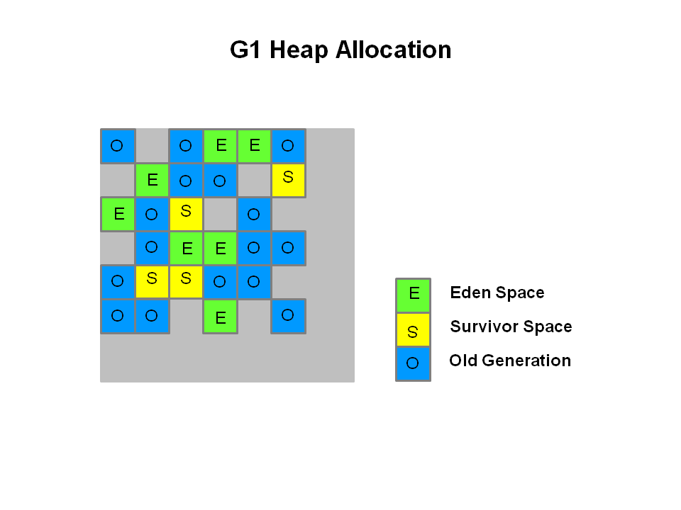 堆被划分成一组大小相等的堆区域,每个区域都是一个连续的虚拟内存范围。某些区域集被分配相同的角色(伊甸园,幸存者,老)在老收藏家,但没有固定的大小为他们。这在内存使用方面提供了更大的灵活性。