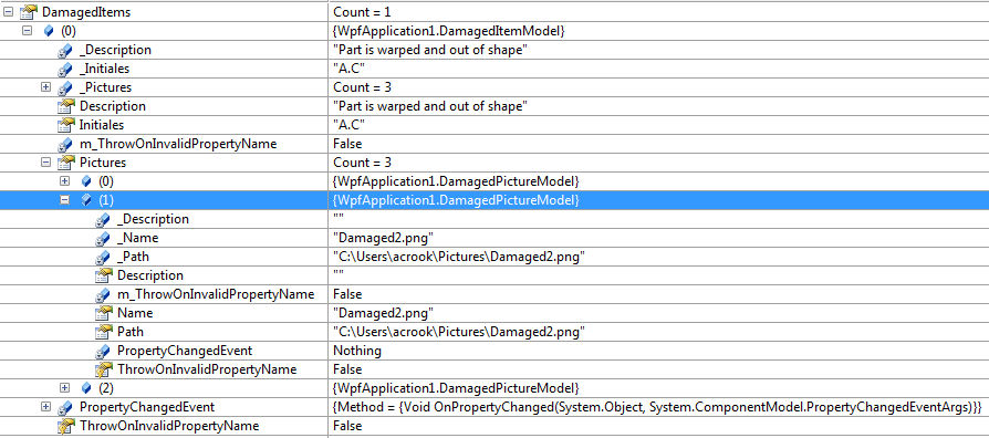 我有一个带有DataGrid的检查窗口,用来保存损坏物品的描述和检验员的首字母。更重要的是,这个DataGrid的RowDetailsTemplate需要保存检查器对受损项拍摄的图片(因此可能有多张受损项的图片)。