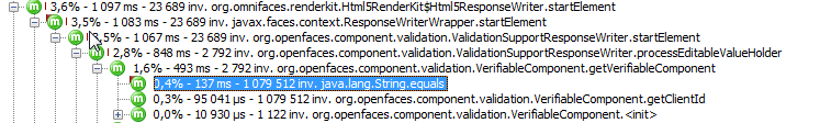 因此,这会导致对openfaces验证后端执行不必要的调用。这就是我在进行分析时所发现的,我看到我们花费了一定的时间在几乎满是选择的JSF小部件的页面上进行String.equals检查: