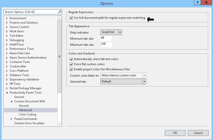 注册加入HKEY_CURRENT_USER\Software\Microsoft\VisualStudio\10.0\DialogPage\Microsoft.DocWellBehavior.GeneralOptions /v UseFullPathForRegEx /t REG_SZ /d True /f