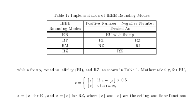 好的,这都是关于整数的四舍五入。这和舍入最近的浮点数有什么关系,比如IEEE-754?舍入规则不仅可用于整数的整和,还可通过简单地将其按b**n因子缩放到任意固定数的数字,其中b是表示的基础,而n被选中,以便该数字的所需舍入点最终位于单位位置( LSB)。当然,我们实际上并不需要对结果进行缩放;相反,我们只需将舍入规则中的ceil(x)和floor(x)替换为x值四舍五入,并达到所需的数字数。