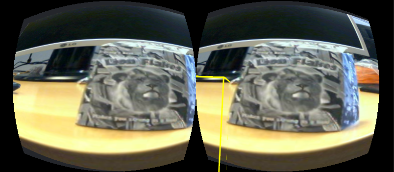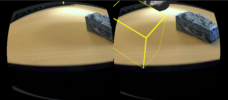 总体目标是一个相当简单的概念,我希望能够将图像从网络摄像机到oculus裂口,并能够检测多个图像目标和显示三维模型。我有相机馈送到裂缝和它的工作良好,但3d模型没有被绘制到正确的视角,它似乎是在oculus视界之外。
