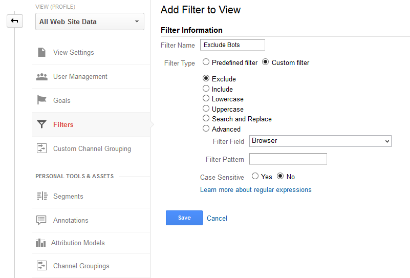 127.0.0.1 google-analytics.com这是防止伪造数据的最简单的方法。这样,您就不必向所有客户添加一个过滤器。