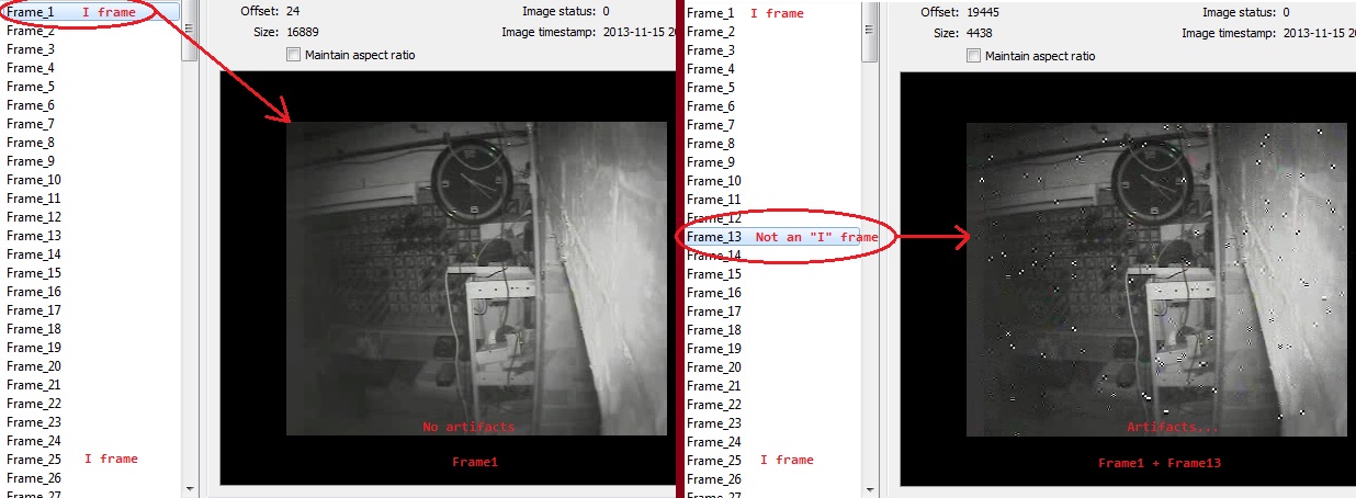 在一个GOP中,有一个I和左边是P帧,正如你可能知道的那样,P帧依赖于I/P帧,所以它们没有所有的数据,所以如果你只从一个GOP中解码一个帧,你只会得到特定帧中的数据,这就是你所说的伪像。整体只在我的框架内,左所有都将是这样的,这就是为什么我们有共和党。