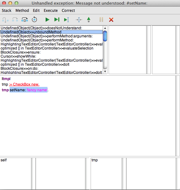 tmp setName: 'fancy name'.,但在上面的示例中,当我将'Field‘改为'CheckBox’时,总是会得到“未处理的异常: MessageNotUnderstood:#setName:”。你们知道我应该如何让我的子类从它的父类继承setName:方法吗?我到处都在找答案,但到目前为止还没有找到答案。