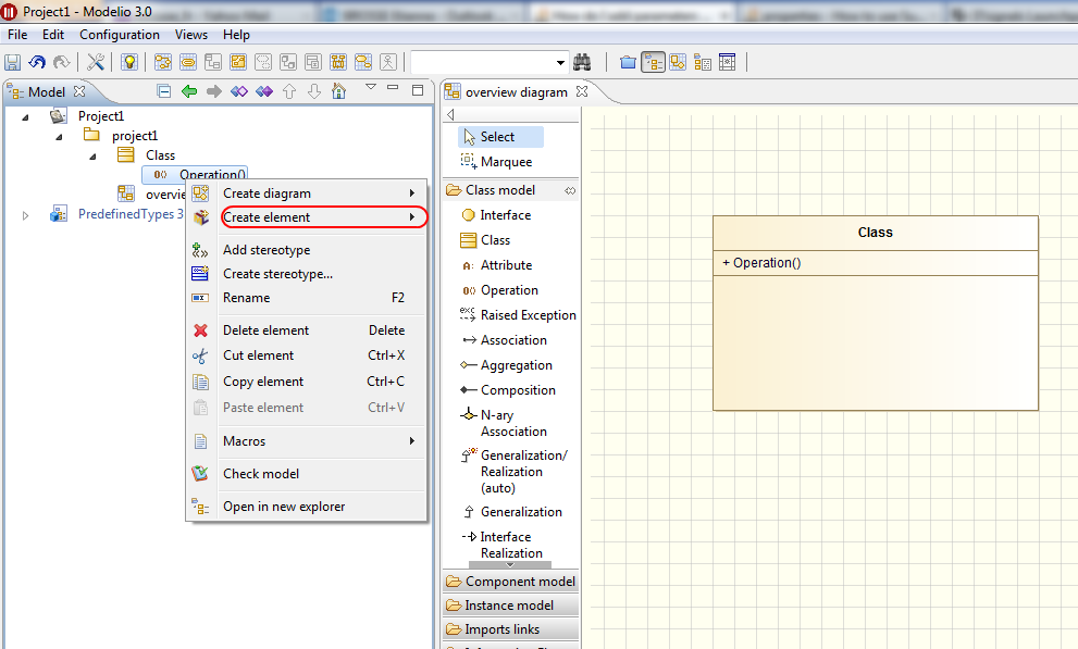 为了显示“操作上下文”菜单,请在资源管理器中选择操作,然后右键单击“在附件中显示”并使用“创建元素”>“参数”或返回参数。
