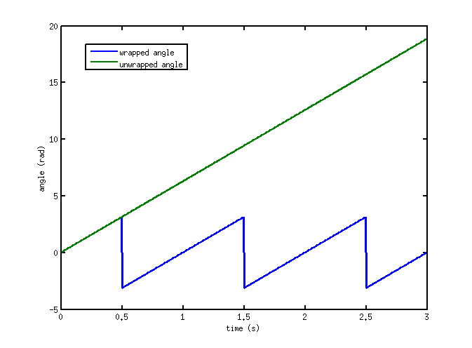 我有一个旋转矢量R(x(t), y(t)),我想找一个角度作为时间的函数。atan2是在-pi和pi之间确定的,但是对我来说分析所有的动力学是不方便的。那么,有没有办法将atan2从-inf扩展到inf?