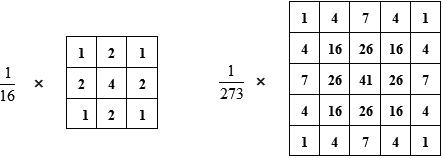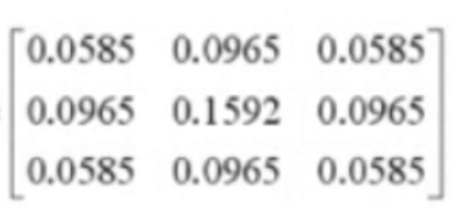 因此,例如,如果您想要一个标准偏差为σ= 1的高斯滤波器3x3。