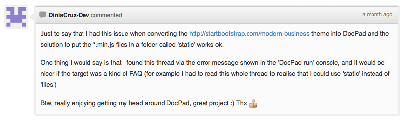 2013-11-18T20:34:49.337179+00:00 app[web.1]: info: DocPad listening to http://localhost:40142/ on directory /app/out