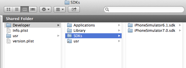 我已经将sdk6.1从xcode4复制到xcode5文件夹,如下所示