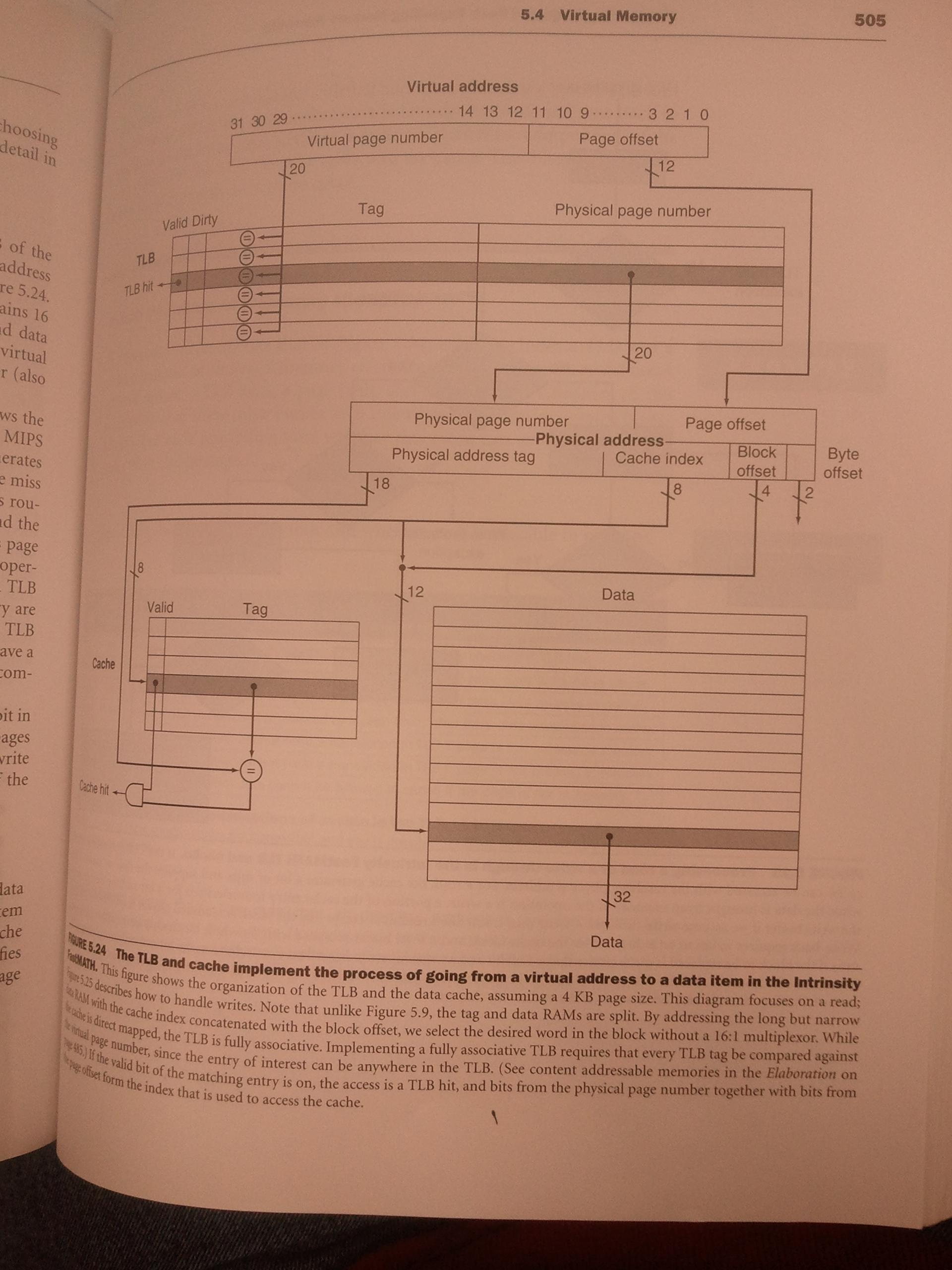 对于35位虚拟地址,这将留下21位用于索引TLB中的集合和该集合中的标记条目。由于TLB有256个条目,每个集合有8个条目(8路关联),因此有32组,需要5位来索引一个集合。这给标签留下了16位。