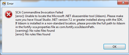 您是否修改了\Core\config\fortify-sca.properties中的键com.fortify.sca.IldasmPath?将通往ildasm.exe的路径放在右手边。