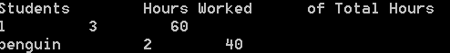 cout << setw(20) << "of Total Hours";