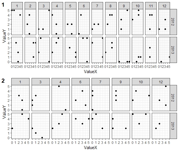 plot2<-ggplot(df[df$Facet2==2,], aes(ValueX, ValueY)) + geom_point() +