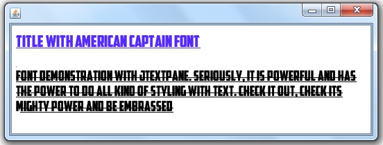 styleDocument.insertString(0, "Title with American Captain font\n\n", primaryStyle);
