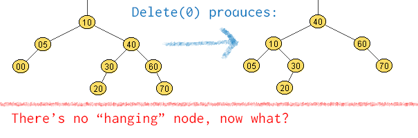 但是,让我们在左边的树上添加节点70,并尝试将删除()减少到Insertation中。