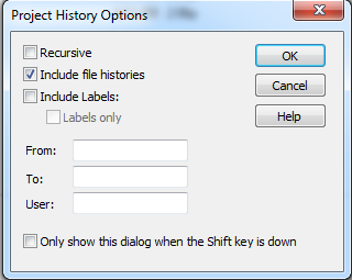 对于VSS,可以在“历史选项”对话框中执行筛选。