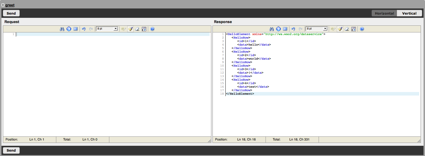 我创建了一个数据库并将其链接到创建的数据服务,当我在WSO2的管理面板中测试服务时,我从数据库中获得所需的数据。