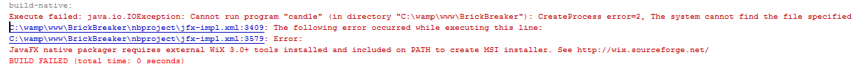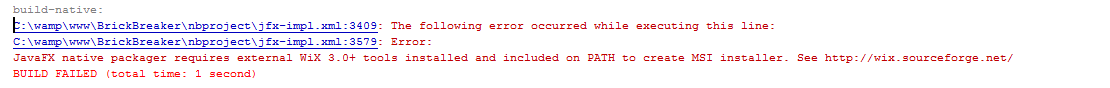 当我尝试使用netbeans创建msi安装程序时,它显示了以下错误: