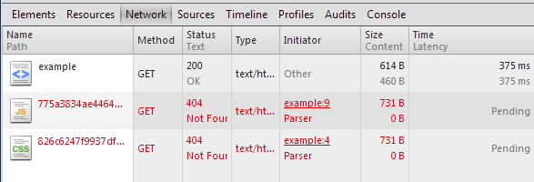 看起来我的端口转发是成功的,但我想知道为什么我得到404与请求的css和js文件?这两个文件驻留在/头/程序/客户端中。