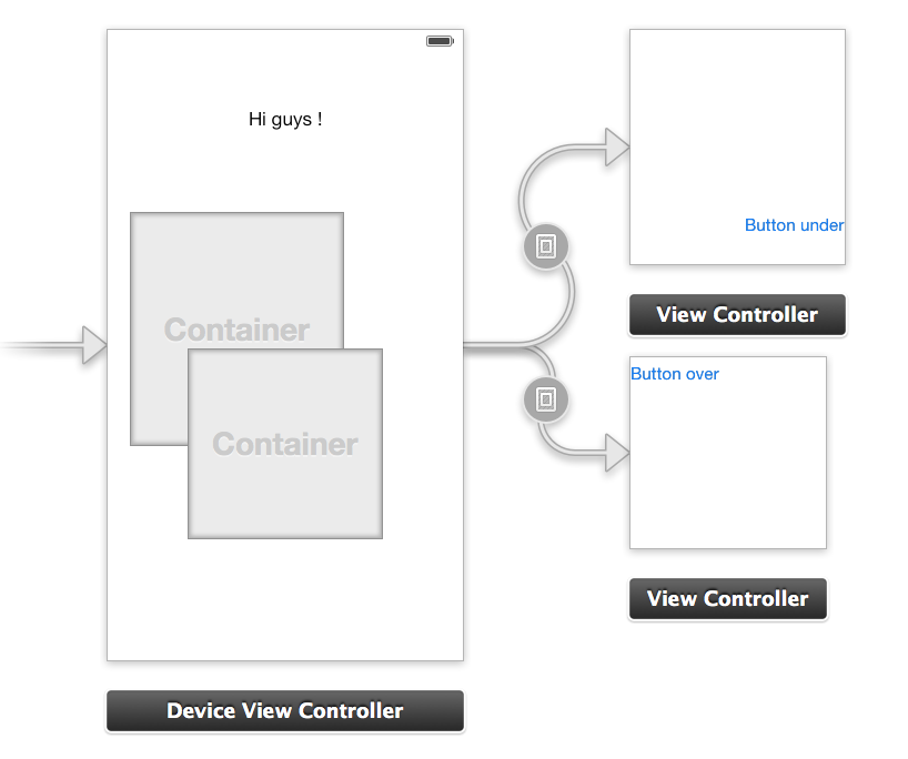 在接口构建器中是否有实现这一点的方法,只有?如果没有,是否必须实现自定义容器?还是hitTest:withEvent:在我的DeviceViewController中的覆盖是强制性的?