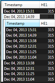 <DataGridTextColumn Binding="{Binding Timestamp, StringFormat=\{0:MMM dd\, yyyy HH:mm\}}" Header="Timestamp" Width="113" />