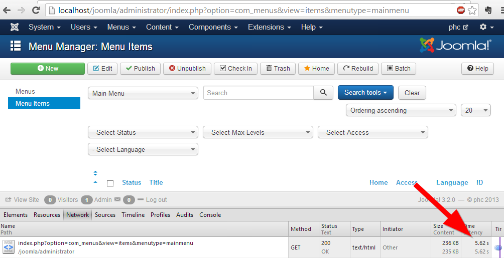我可以继续下去。点击“新菜单项”并点击“保存”将花费同样长的时间。因此,对于添加菜单项这样简单的事情,用户花费大约一分钟的时间查看一个空白屏幕(假设用户背熟joomla,并且没有错误的单击,因此再也不需要返回)。