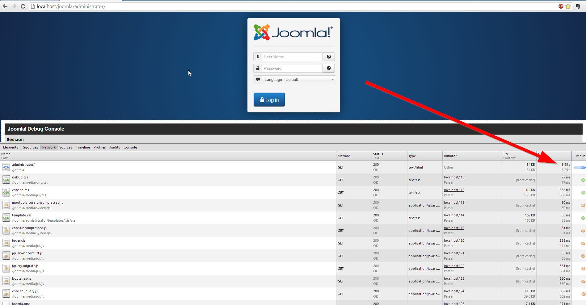 我没有一个特别好的本地机器(只是一个便宜的W8和使用EasyPHP),我的时间都比枯萎你的或其他人报道的快得多。您可以做的一件事是打开调试并查看分析数据。当我加载管理登录页面时,即使在调试时,我也可以看到它是onAfterDispatch,它是进程中最慢的部分。很多时候升级MySQL会给速度带来巨大的改善。