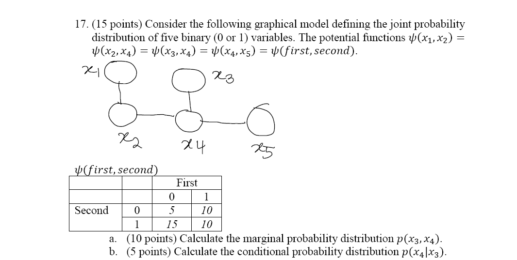 p(x3,x4)=1/Z \sum_{x1,x2,x5} \phi(x1,x2) \phi(x2,x4) \phi(x3,x4) \phi(x4,x5)