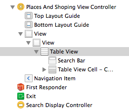 所有工作正常(搜索,搜索结果),但我有一个问题:当我按下搜索她它变得更大,当我按下取消按钮,它改变了他的位置,并返回到初始位置,请检查这个图片。我遗漏了什么?我只是用故事板连接了我的searchDisplayController,使用一些搜索代码,我不会改变searchBar的大小或位置。