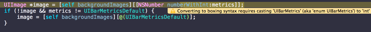 [self backgroundImages][[NSNumber numberWithInt:barMetrics]] = backgroundImage;我该怎么解决这个警告呢?