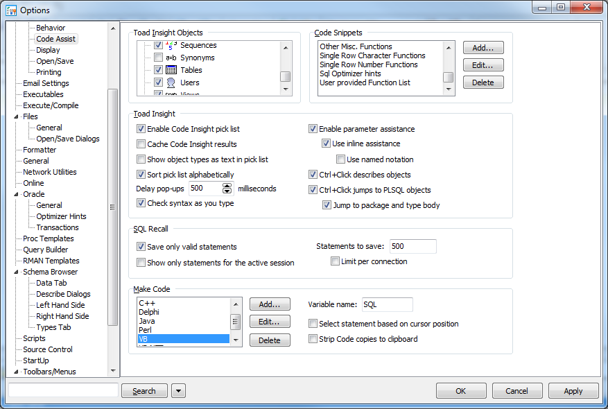 在View >蟾蜍选项>编辑器>代码助手>蟾蜍洞察对象下,检查同义词(除了公共同义词)为我工作。