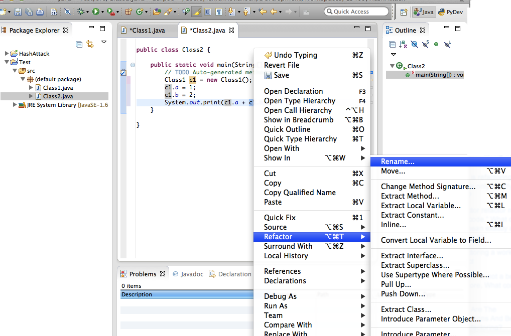 我将把"Rename“Eclipse工具解释为Eclipse "Refactor”菜单下的工具示例。