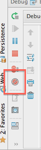 在“调试工具”窗口中,有一个名为“Mute断点”的按钮。在左手边。它看起来像一个红色的圆圈,有一个斜线穿过它。JetBrains帮助。
