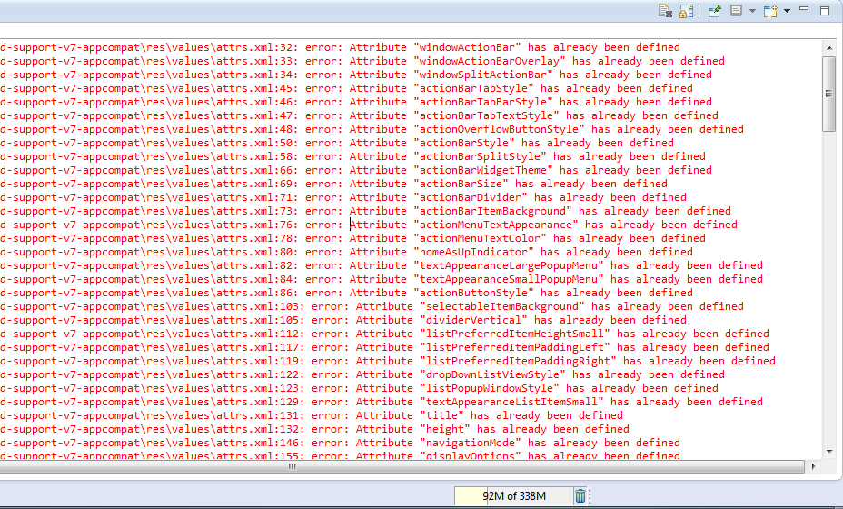 第二版编辑。现在,我从项目中删除了ABS,并使用Appcompat为Commonsware相机项目。它编译,现在错误如下: