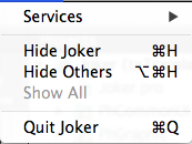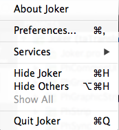 a.installTranslator(&translator);使用英文文件,我得到了About和Preferences子菜单,它自动进入Joker菜单,如下所示: