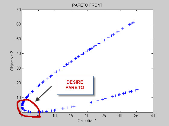 我正在试图获得帕累托最优前沿的两个健身功能。我使用一个虚拟矩阵来对不占优解进行排序,它在矩阵中为任意不占优解分配“1”。当我绘制帕累托前沿时,它总是包含一些我知道不是帕累托最优部分的点。然而,我似乎找不到这个问题的原因。任何帮助都会很感激的。