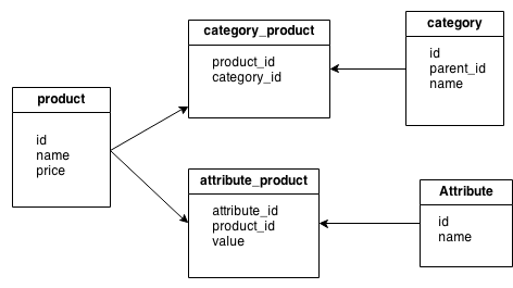 作为我最近开始规划的一个项目的一部分,我需要构建一个包含多个产品的数据库结构。举个例子,想想亚马逊的结构方式。它有几个类别,在这些类别中,有几个子类别。