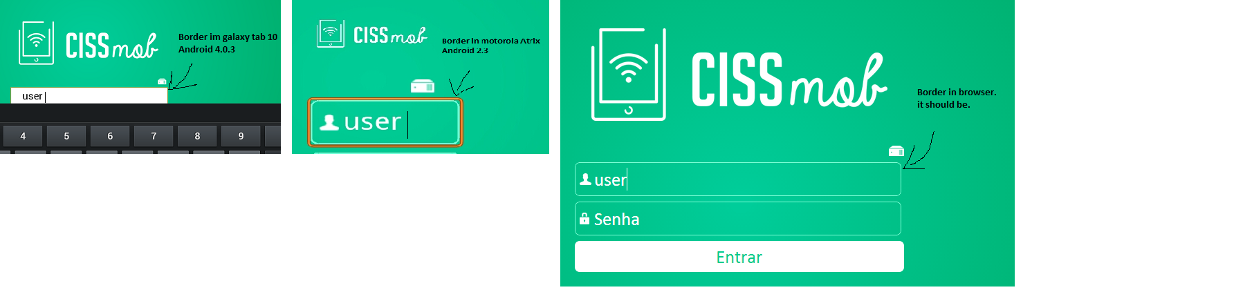 备注:在Android 2.x操作系统在密码类型输入字段的顶部添加了一个层,因此这些输入字段在聚焦时会失去样式:Input has different style on focus