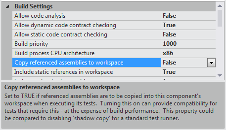 但是,如果要动态加载程序集(即Assembly.Load()),运行时默认希望DLL位于正在执行的程序集旁边,但它不会出现。在这种情况下,您需要指示NCrunch使用复制引用程序集到工作区的选项带来依赖关系,您可以通过右键单击目标程序集并选择配置所选组件从NCrunch视图访问该依赖项。