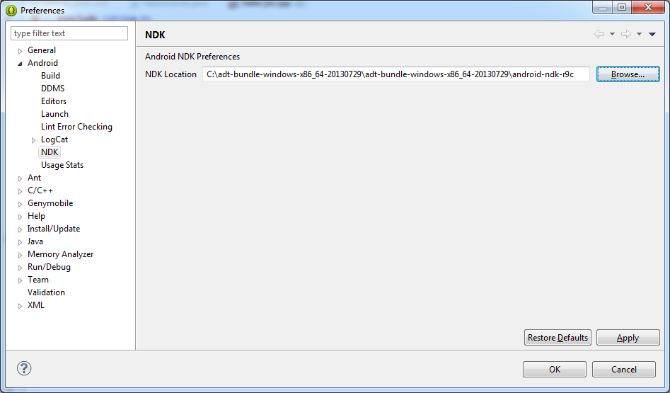 我也将项目转换为C/C++,并在eclipse中添加NDK,如下所示