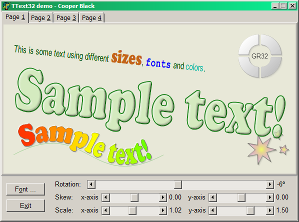 在我看来还是挺傻的。因此,为了获得最好的质量,我推荐graphics32和GR32_Text。