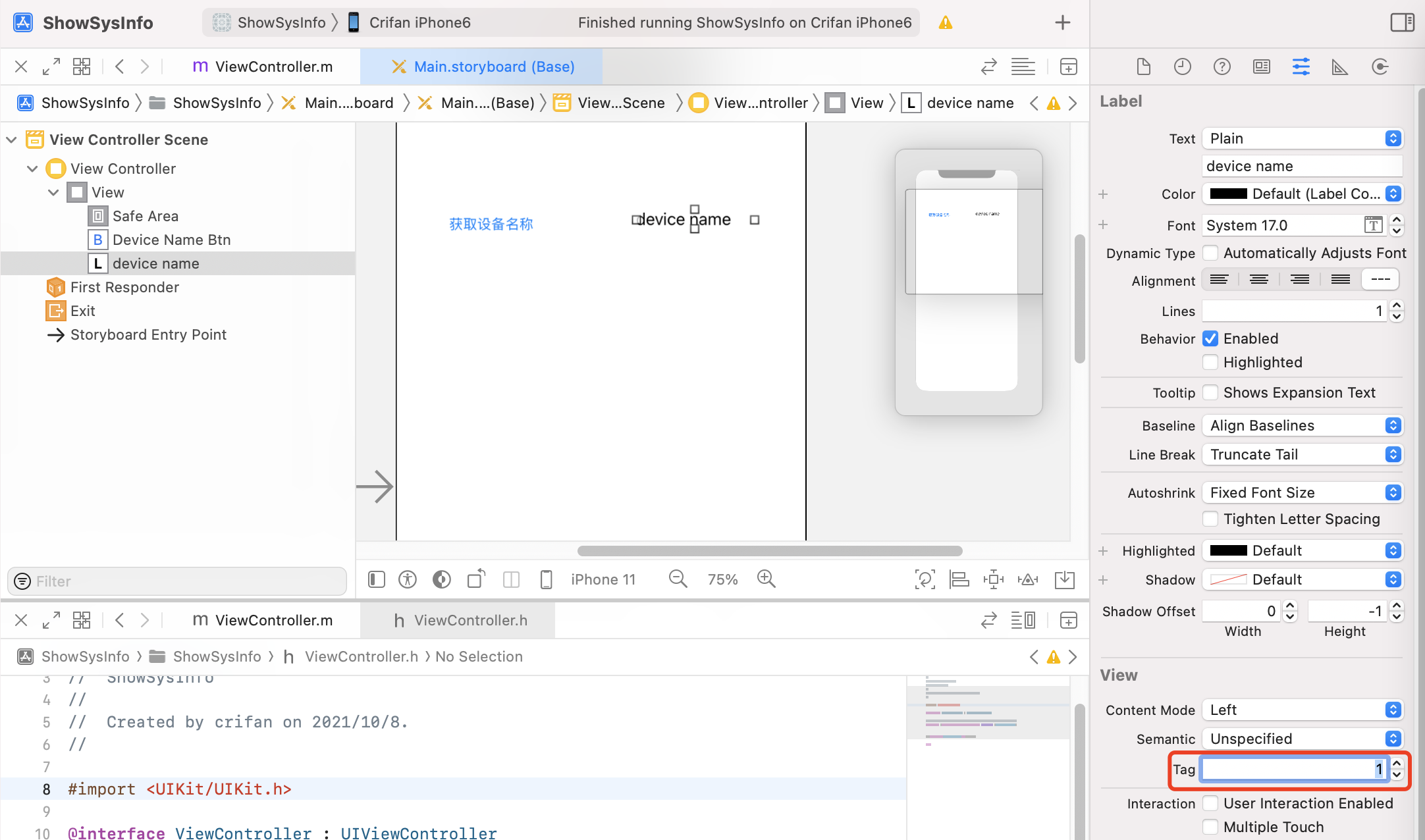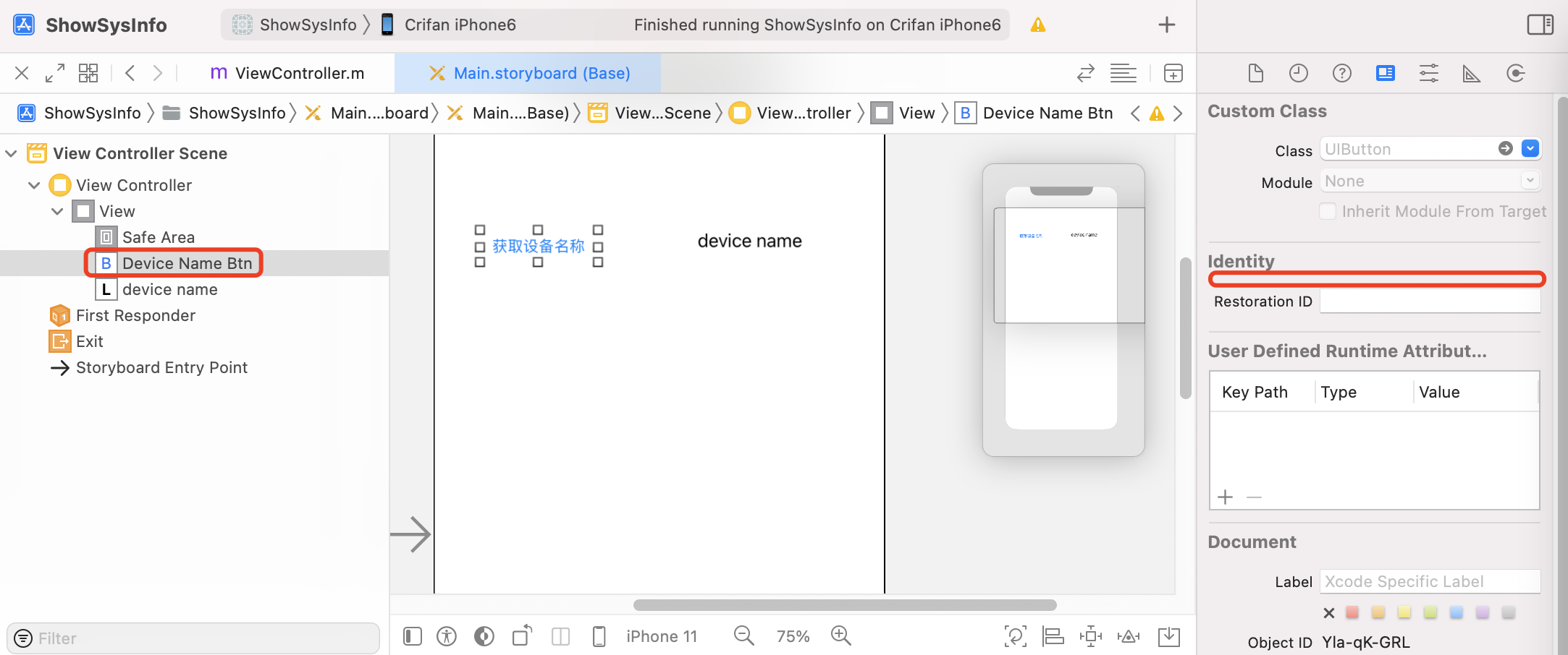 @property (weak, nonatomic) IBOutlet UIButton *deviceNameBtn;然后在你(目标-C)代码中,你可以使用deviceNameBtn作为ID of UIButton,做任何你想做的事情。