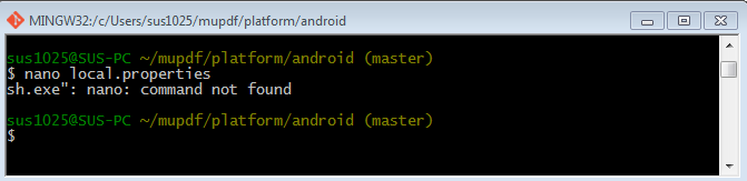 ~/src/mupdf/android $ nano local.properties在最后一行~/src/mupdf/android $ nano local.properties中,我得到了这个错误
