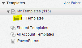 GET https://{{env}}.docusign.net/restapi/{{version}}/accounts/{{acctId}}/templates?Folder=TF%20Templates&includeSubFolders=true根据您所得到的错误,我怀疑您(不正确)使用了动词POST,而不是使用动词GET。当您想要创建一个新的模板(在这种情况下需要envelopeTemplateDefinition )时,POST会被使用。