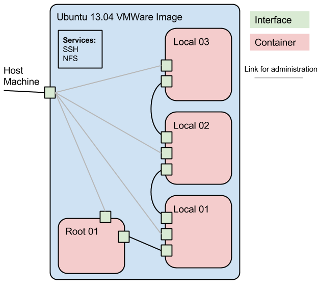 所以我一直在用米尼内在我的网络软件上运行测试。不过,它似乎已经达到了极限,因为Mininet本质上是linux容器,只有一个网络堆栈。我希望每个容器都有自己的网络堆栈、文件系统和进程集--基本上,我希望容器尽可能接近VM。这让我想到了Docker,据我所知,Docker与Mininet相反,它的容器有一个文件系统和它们自己的进程,而不是它们自己的网络堆栈。我倾向于Docker,因为它有一个用于分叉容器的很好的API,只使用diff的磁盘空间。我的问题是,是否可以使用以下容器布局+网络接口设置创建一组linux容器(带有Docker或类似的)?