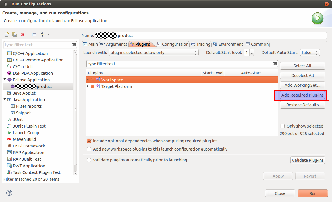 运行您产品的配置。转到插件选项卡,然后单击“添加所需插件”。那就运行你的产品。