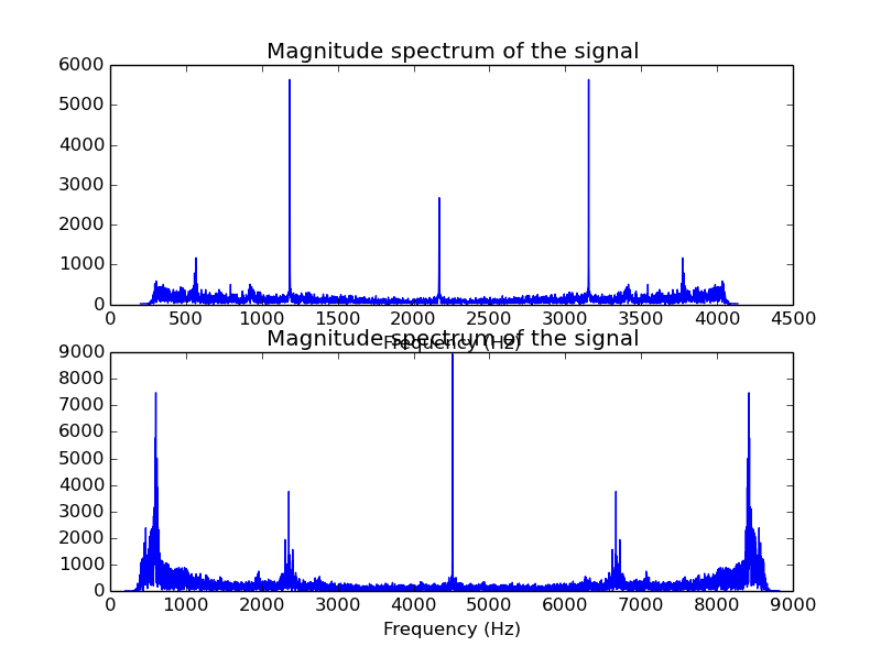 关于如何确定带宽,据我所知,你想得到基频。有不同的方式,或多或少的复杂,无论你的信号是否有噪音,.在你的例子中,你只想知道基频f0是在8-13Hz ( alpha )还是13-30Hz (β);一个非常简单的方法是在8-13Hz范围内计算fft的最大值:fft1[(f>8) & (f<13)].max(),如果它大于1000,它是一个α波,否则就是β。如果您的信号不太相似,请张贴一些不同类型的样本的例子和结果,以便我们可以尝试更复杂的算法。