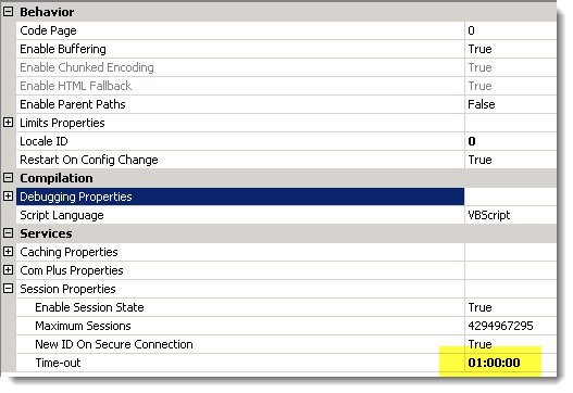 <!-- timeout: Gets and sets the amount of time, in minutes, allowed between requests