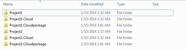 我试图重命名ServiceConfiguration.Cloud.cscfg,但它没有重命名。所以,我想最好把包放在不同的文件夹上。但问题是,在未来的MVC和Azure项目将是未知的计数。所以我需要自动创建文件夹包含名称项目。那它怎么做呢?